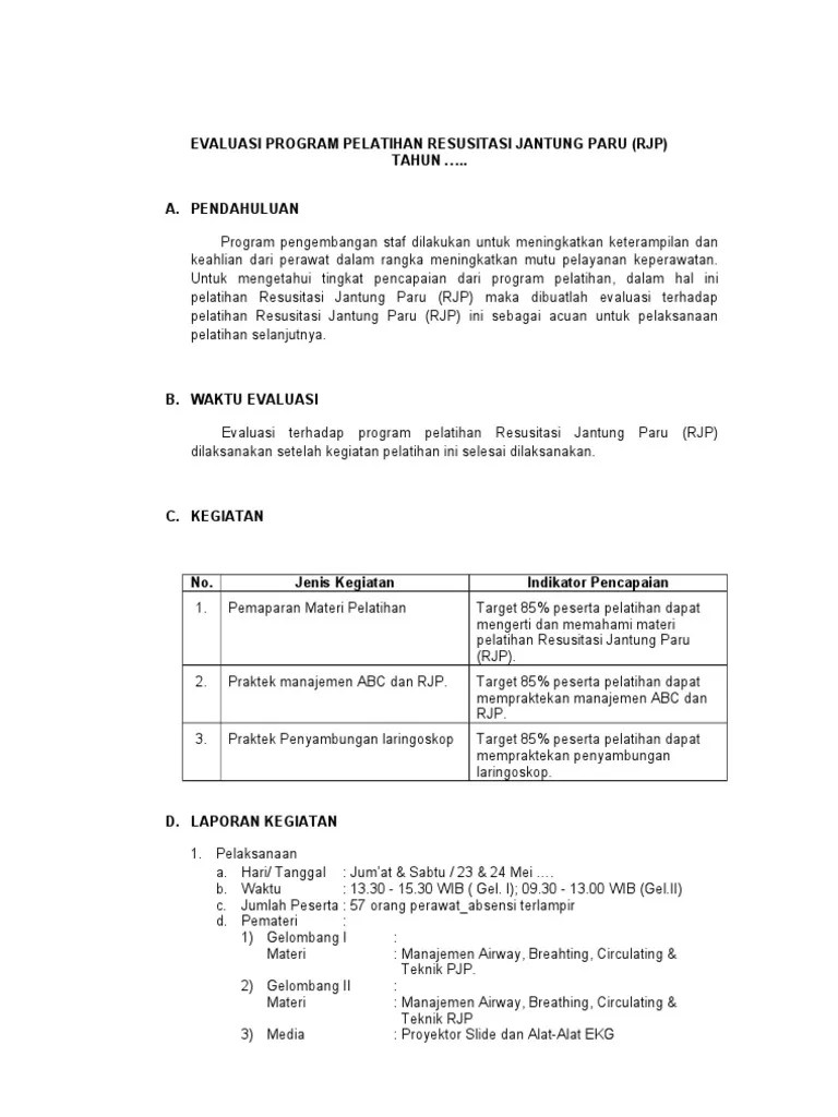 Model evaluasi kirkpatrick dalam pelaksanaannya. Selanjutnya, dilakukan pengumpulan data, menganalisis dan membuat intepretasi terhadap data yang terkumpul serta membuat laporan. Laporan evaluasi adalah informasi tertulis tentang aktifitas training, berfokus pada evaluasi dengan cara yang sistematis,yang berisi analisa . Agama untuk dapat menjadi contoh dan teladan bagi . Pelatihan (diklat) pengadaan barang/jasa pemerintah di badan diklat provinsi.